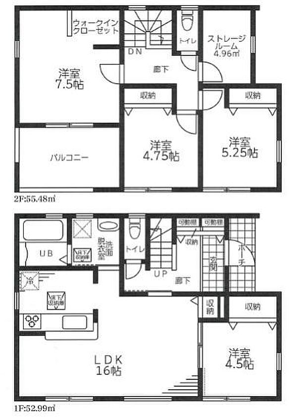 | 間取り | 4SLDK 間取り内訳:リビングダイニングキッチン 16帖・洋室 7.5帖・洋室 5.2帖・洋室 4.7帖・洋室 4.5帖 |