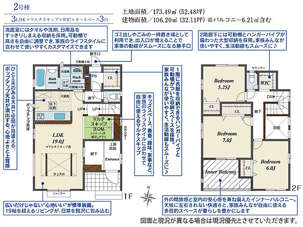 104.54m2(約31.62坪)~106.20m2(約32.12坪) |