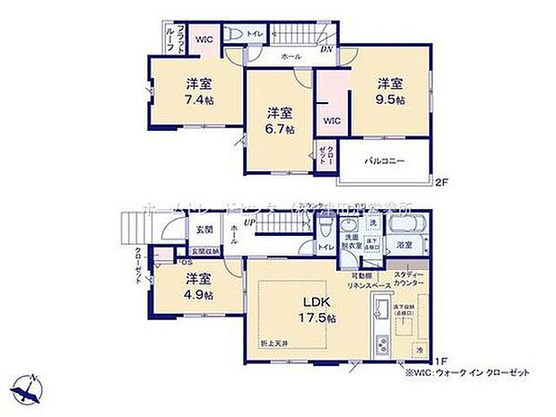 - 「建築条件付き土地」の「建物プラン例」は、土地購入者の設計プランの一例であり、プランの採用可否は任意です。
