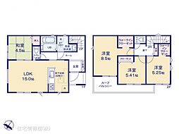 | 間取り | 4LDK 間取り内訳:リビングダイニングキッチン 15帖(1階)・洋室 8.5帖(2階)・洋室 5.4帖(2階)・洋室 5.2帖(2階)・和室 4.5畳(1階) |