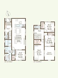 | 間取り | 4LDK 間取り内訳:リビングダイニングキッチン 15.5帖(1階)・洋室 6帖(1階)・洋室 8帖(2階)・洋室 6帖(2階)x2 |
