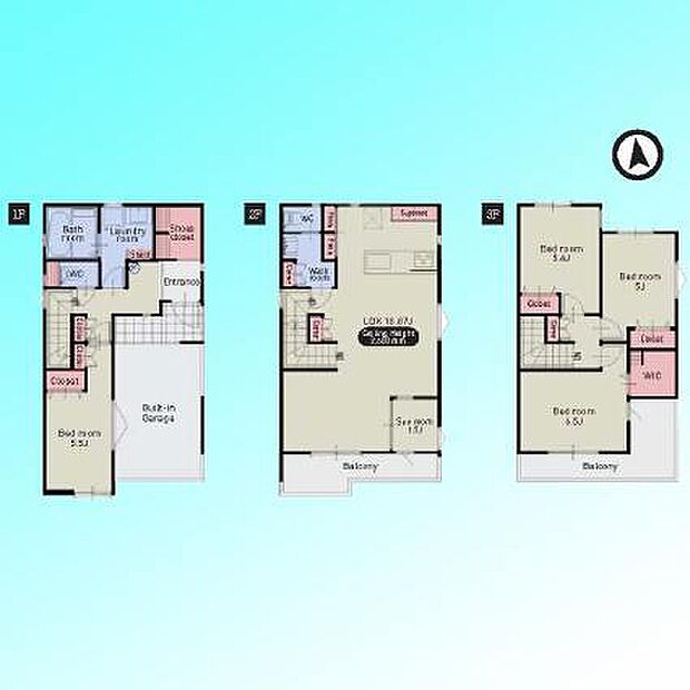 | 間取り | 4LDK 間取り内訳:リビングダイニングキッチン 18.8帖・洋室 5.5帖・洋室 6.5帖・洋室 5.4帖・洋室 5帖 |