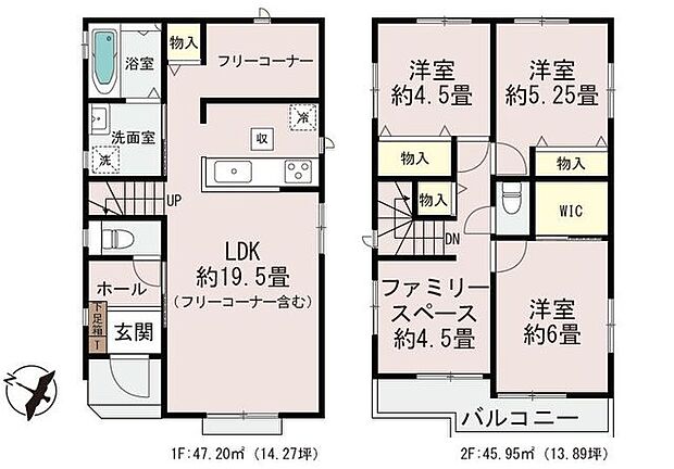 \LDK広々♪/約19.5帖ある広々としたリビングが自慢のお家です!収納スペースが充実した片付け上手な間取り! 二方が空いた立地で開放的♪ 新築80万円補助対象物件!ぜひお気軽にお問い合わせ下さい^^