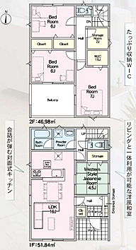 | 間取り | 4SLDK 間取り内訳:リビングダイニングキッチン 16帖(1階)・和室 4.5畳(1階)・洋室 6帖(2階)x2・洋室 7帖(2階)・収納 2帖(2階) |