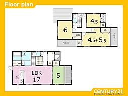 間取り内訳:和室 4.5畳(1階)・リビングダイニングキッチン 17帖(1階)・洋室 7.1帖(2階)・洋室 6帖(2階)・洋室 5.2帖(2階)