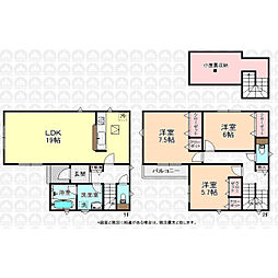 | 間取り | 4LDK(小屋裏収納/5.46?) 間取り内訳:リビングダイニングキッチン 17.2帖(1階)・洋室 7帖(2階)・洋室 4.5帖(2階)・洋室 5帖(2階)・洋室 5帖(2階) |