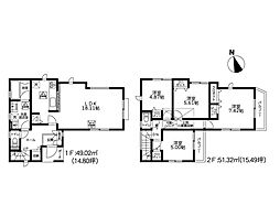| 間取り | 4LDK 間取り内訳:リビングダイニングキッチン 15.5帖(1階)・洋室 5帖(2階)x2・洋室 6.5帖(2階)・洋室 5.2帖(2階) |