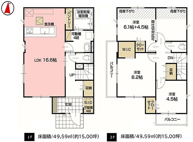 | 間取り | 3LDK 間取り内訳:洋室 10.6帖・洋室 8.2帖・洋室 4.5帖・リビングダイニングキッチン 16.6帖 |