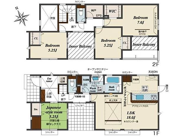 | 間取り | 4LDK 間取り内訳:リビングダイニングキッチン 18帖・和室 5.2畳・洋室 7帖・洋室 5.2帖・洋室 5.2帖 |