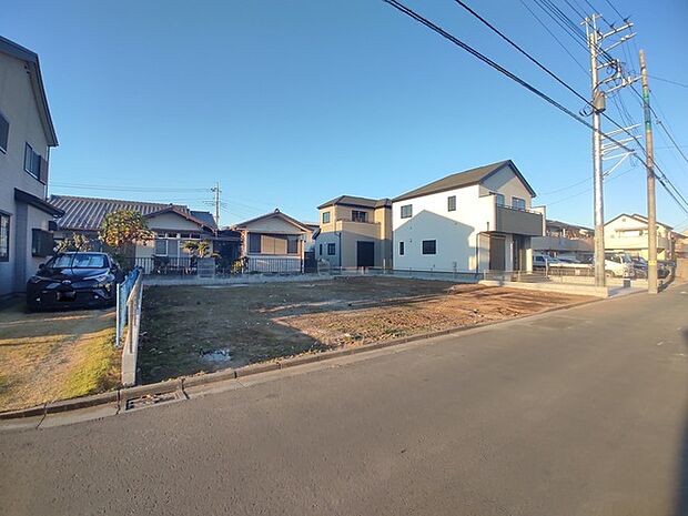南道路の車並列2台駐車可能です。広いリビングと日当り良好なマイホーム。