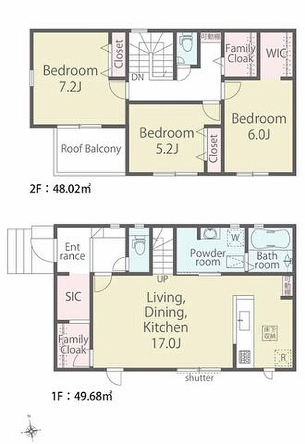 | 間取り | 3LDK 間取り内訳:リビングダイニングキッチン 17帖(1階)・洋室 7.2帖(2階)・洋室 6帖(2階)・洋室 5.2帖(2階) |
