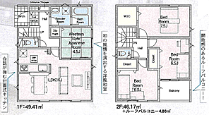 | 間取り | 4LDK 間取り内訳:リビングダイニングキッチン 16帖(1階)・和室 4.5畳(1階)・洋室 6.5帖(2階)x2・洋室 7.5帖(2階) |