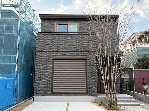 • No.1_外観1(撮影_2025年12月)工場で作るボックスラーメン構造ユニット工法の鉄骨住宅です。耐震性能も高く、重厚感のあるデザインです。