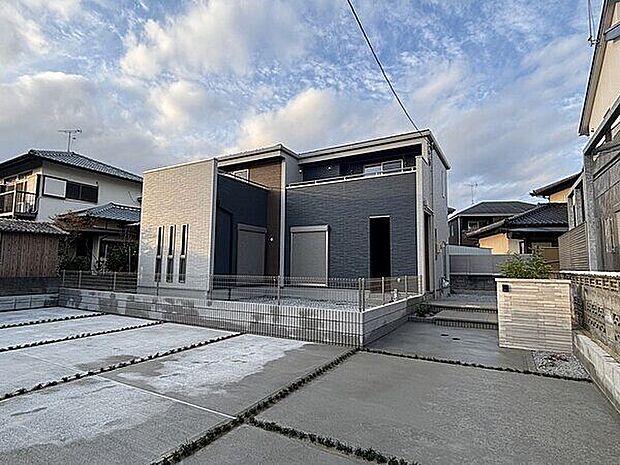カースペース並列4台駐車可能。LDK21畳の南道路に面した新築戸建てです。