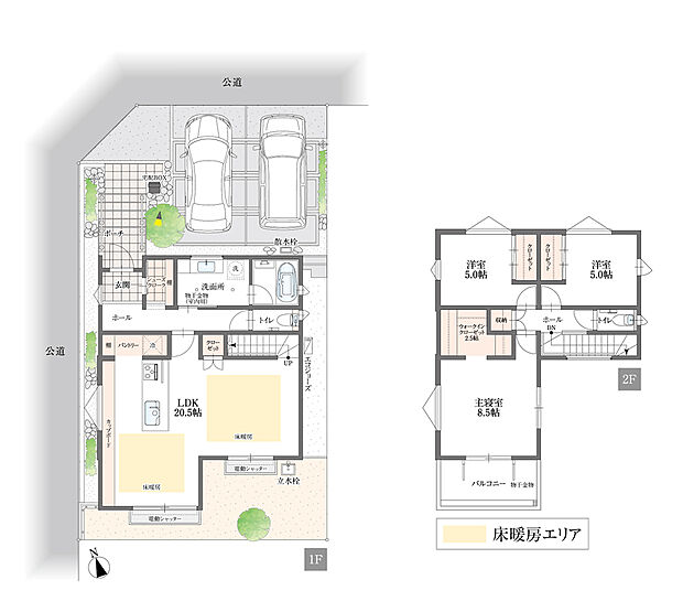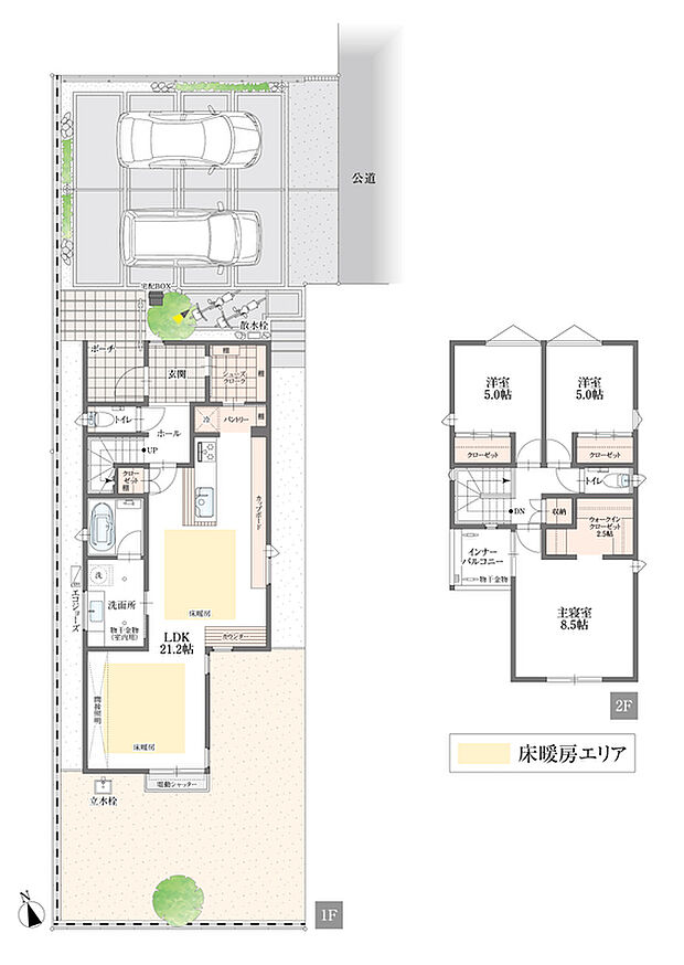 建物面積 105.28m2・106.01m2(31.84坪・32.06坪)