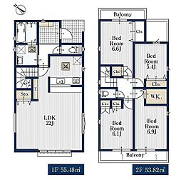| 建物面積 | 104.77m2(A号棟)・103.11m2(B号棟) | ||