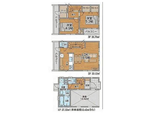 | 間取り | 3LDK | 建物階 | 木造 3階建 |