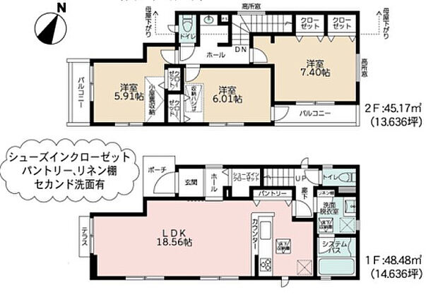 | 建物面積 | 93.15m2~93.65m2 | ||