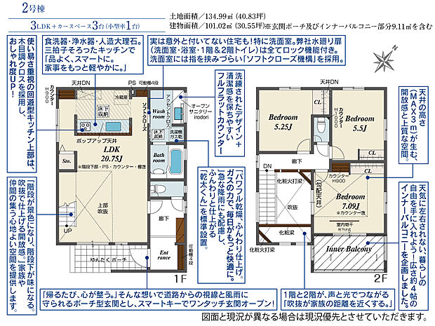 90.46m2(約27.36坪)~101.02m2(約30.55坪) |