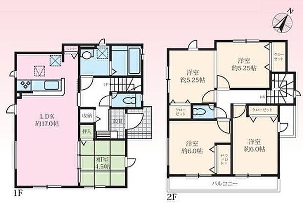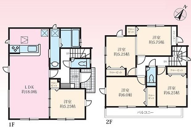 ※2階の一部屋に壁をつけることによって、5LDKにできます。(別途費用)