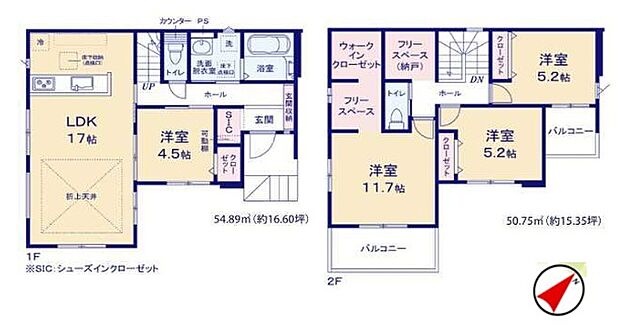 | 間取り | 4LDK 間取り内訳:リビングダイニングキッチン 17帖・洋室 4.5帖・洋室 11.7帖・洋室 5.2帖x2 |