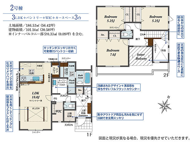 ◆天井を高くしてリビングに開放感をプラスした折上天井♪地球に優しいオール電化住宅♪洋服選びが楽しくなっちゃう♪ウォークインクローゼット付き◎急な雨でも安心!インナーバルコニー◎駐車場3台可能♪