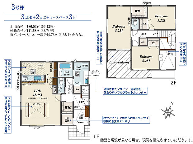 ◆天井を高くしてリビングに開放感をプラスした折上天井♪地球に優しいオール電化住宅♪洋服選びが楽しくなっちゃう♪ウォークインクローゼット付き◎急な雨でも安心!インナーバルコニー◎駐車場3台可能♪