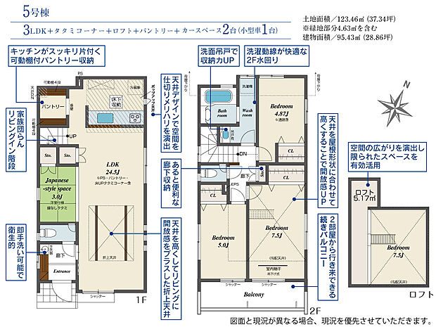 建物面積 95.22m2(約28.80坪)~95.64m2(約28.93坪)