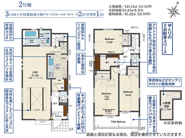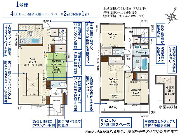 土地面積 123.45m2(約37.34坪)~123.64m2(約37.40坪)