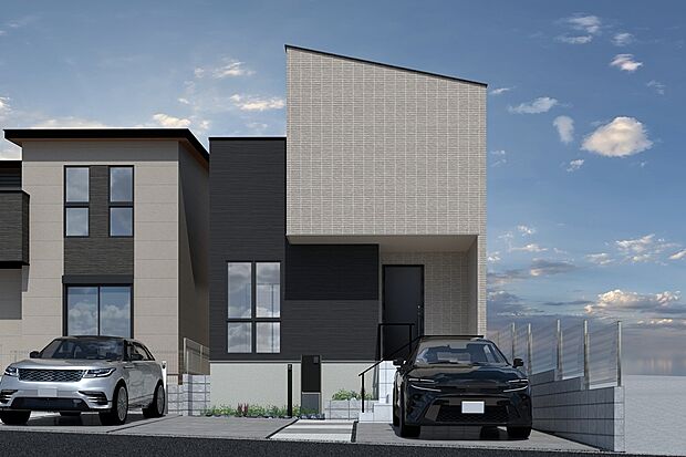 • 【CGイメージパース/(右から)1号地、2号地外観パース】(建物未完成のためイメージパースです)