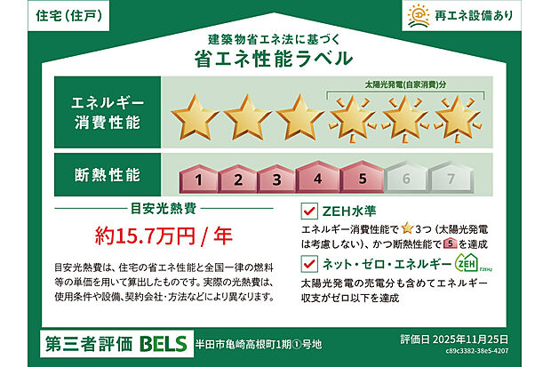 星マークの数が多いほどエネルギー消費性能が高いことを示しています。再エネ設備のない住宅は★0~★4の5段階評価、再エネ設備がある住宅は★0~★6の7段階評価となります。