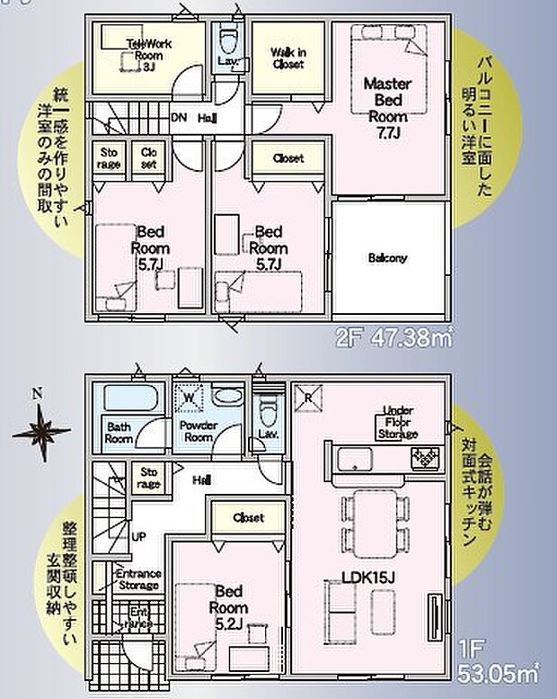 | 間取り | 4LDK(+テレワークルーム3帖) 間取り内訳:リビングダイニングキッチン 15帖・洋室 7.7帖・洋室 5.7帖・洋室 5.7帖・洋室 5.2帖 |