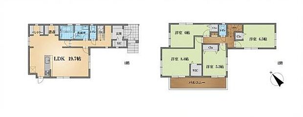 南西・北西角地で開放的。WICやSIC・パントリーなど収納充実。2階にセカンド洗面あり。