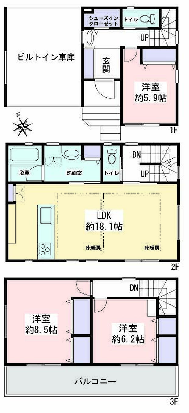 2路線利用可 ビルトイン車庫 各居室収納 SIC リビングダイニング床暖房