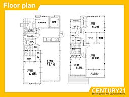 | 間取り | 4SLDK 間取り内訳:リビングダイニングキッチン 18帖(1階)・洋室 5.2帖(1階)・洋室 7帖(2階)・洋室 6帖(2階)・洋室 5.2帖(2階) |