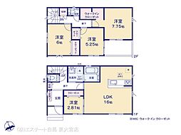 | 間取り | 3LDK 間取り内訳:洋室 6帖(1階)・洋室 5.2帖(1階)・リビングダイニングキッチン 18.3帖(2階)・洋室 5帖(2階) |