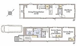 | 間取り | 2SLDK 間取り内訳:洋室 7帖(1階)・洋室 5.3帖(1階)・収納 6.1帖(1階)・リビングダイニングキッチン 19帖(2階) |