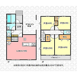 間取り内訳:リビングダイニングキッチン 15.7帖(1階)・洋室 6.6帖(2階)・洋室 5.2帖(2階)・洋室 4.5帖(2階)x2