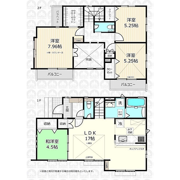 LDKに隣接の和洋室を開放すると21.5帖の大空間/主寝室7.96帖/バルコニー2ヶ所/カースペース2台可
