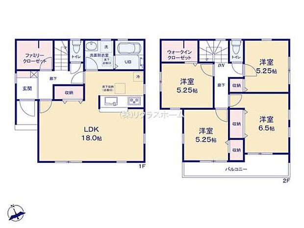 間取り内訳:リビングダイニングキッチン 18帖・洋室 6.5帖・洋室 5.2帖・洋室 5.2帖・洋室 5.2帖