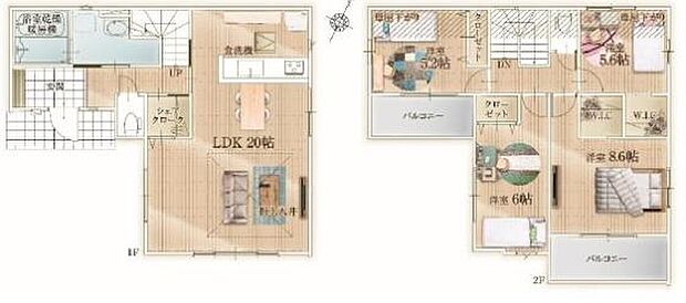 間取り内訳:リビングダイニングキッチン 20帖・洋室 8.6帖・洋室 6帖・洋室 5.6帖・洋室 5.2帖