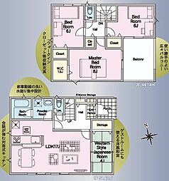| 間取り | 4LDK 間取り内訳:リビングダイニングキッチン 17帖(1階)・和室 4畳(1階)・洋室 8帖(2階)・洋室 6帖(2階)x2 |