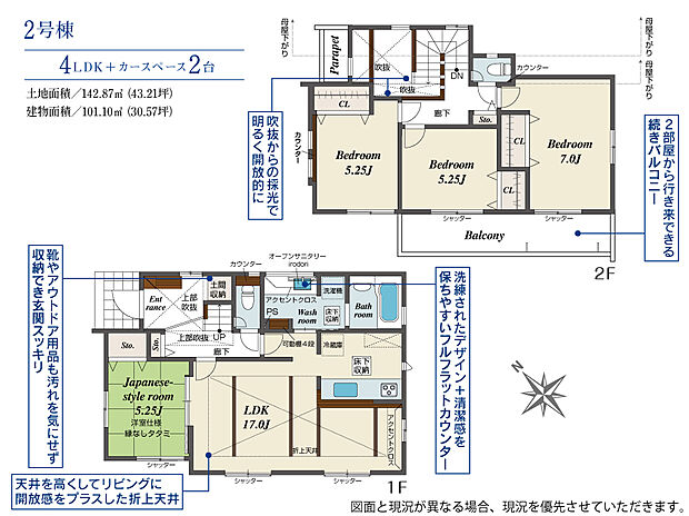 101.02m2(約30.55坪)~106.40m2(約32.18坪) |