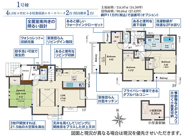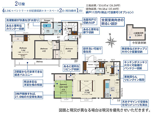- 「建築条件付き土地」の「建物プラン例」は、土地購入者の設計プランの一例であり、プランの採用可否は任意です。