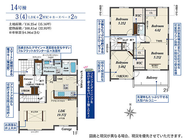 建物面積 108.83m2(約32.92坪)~110.83m2(約33.52坪)