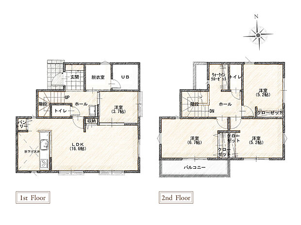 - 「建築条件付き土地」の「建物プラン例」は、土地購入者の設計プランの一例であり、プランの採用可否は任意です。