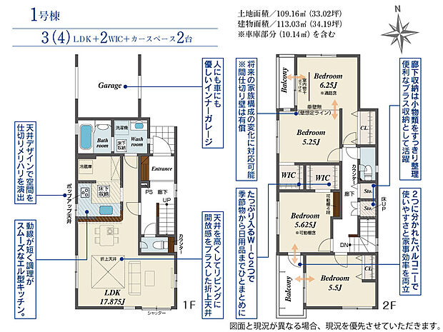 - 「建築条件付き土地」の「建物プラン例」は、土地購入者の設計プランの一例であり、プランの採用可否は任意です。