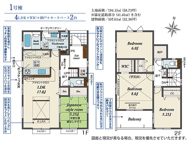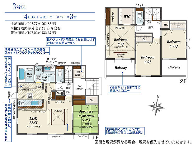 98.12m2(約29.68坪)~107.03m2(約32.37坪) |