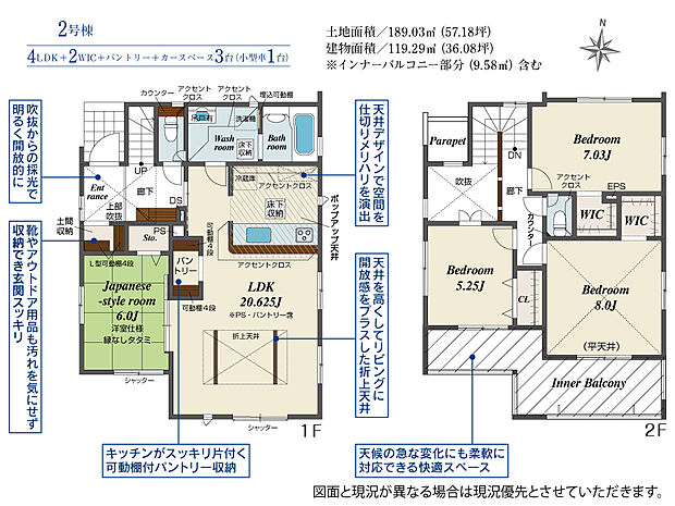 | 建物面積 | 116.34m2(約35.19坪)~119.29m2(約36.08坪) | ||