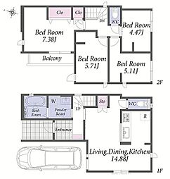 | 間取り | 3LDK 間取り内訳:リビングダイニングキッチン 17帖(1階)・洋室 9.7帖(2階)・洋室 6.5帖(2階)・洋室 5.2帖(2階) |